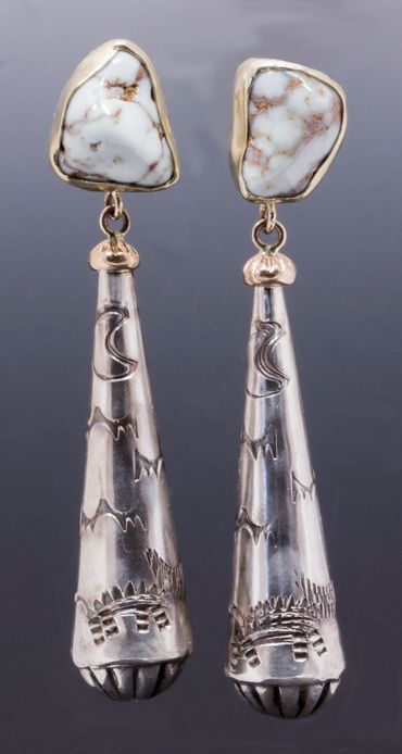 Stamped pieces are made using a variety of Navajo and other custom made stamps. Antique dies are patterns for modern creations. Stone inlay and stone in stone pieces add variety to settings. And carvings! Well, stone carving takes a very long time, but the results can set jewelry off like nothing else. Sterling silver, fine silver, gold, or a mix. Variety is the spice of life!
